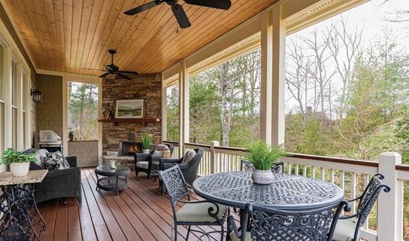 Prepare to be captivated. Designed by The Architectural Practice and built by Glennwood Custom Builders, every space is designed and delivered with exceptional quality to intentionally capture your day’s most memorable moments. The naturally bright living room invites you to enjoy a morning coffee overlooking Walnut Cove’s 11th golf hole. Become mesmerized by mountain sunsets on the deck or cocktails on the screened porch. The oversized spa, complete with a water all, invites you to unwind as fire ies dance over the valley. Even though your sanctuary feels a world away, The Cliffs at Walnut Cove’s Club Village is a short stroll for top-shelf dining, golf, and merrymaking.