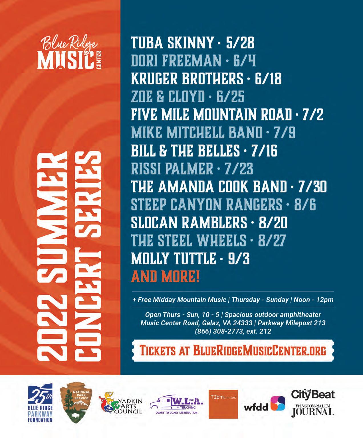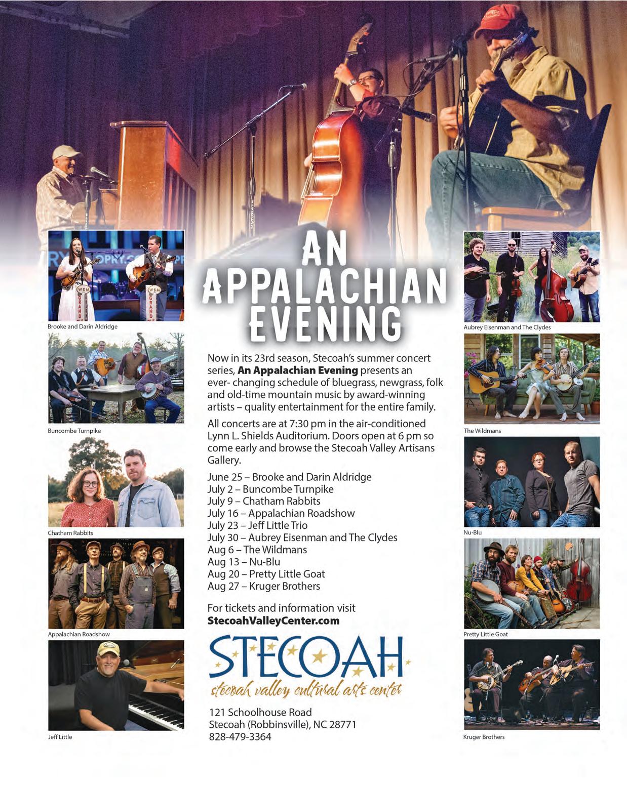 • Listen to Down the Road Podcasts now featuring four seasons of traditional music profiles and history at blueridgemusicnc.com/listen-and-learn/down-the-road-podcast