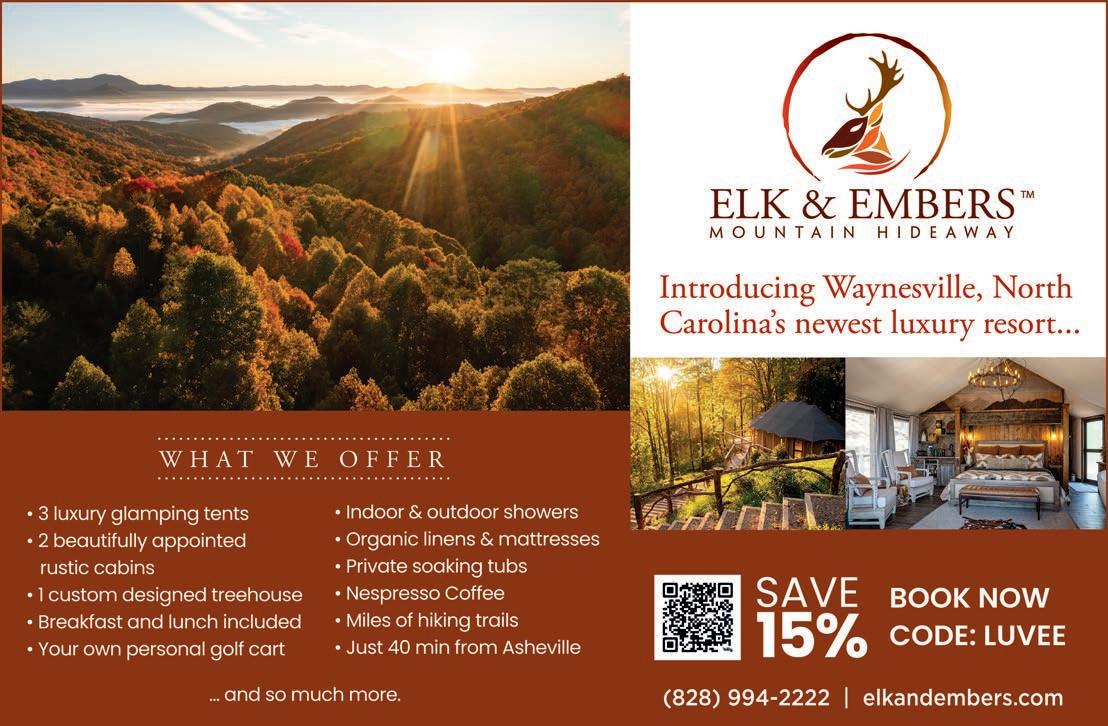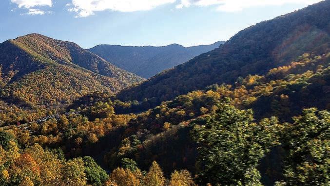 BearWaters Brewing has an outpost in the valley and Cataloochee Ski Area, also in Maggie Valley, is one of the South’s premier ski resorts. Just up the mountain from the ski area, Cataloochee Ranch o ers guests sweeping views, horseback riding, hiking trails, and upscale lodging that blend Western heritage with modern comfort. The festival grounds located along Maggie Valley’s main commercial strip hosts events on many weekends throughout the summer and fall, including the Maggie Valley Arts & Crafts Show.