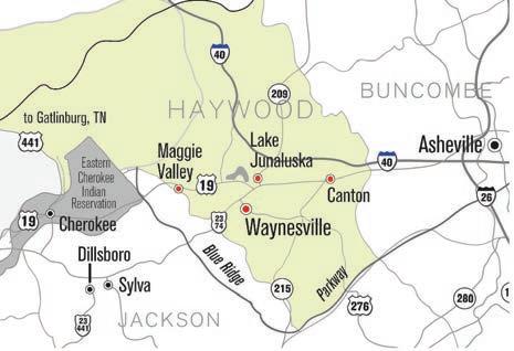 Waynesville is Haywood County’s largest town and county seat, containing both the Haywood County Courthouse and Town of Waynesville o ces. Single-family homes and retail stores surround the historic downtown with its quaint brick sidewalks, galleries, breweries, gourmet restaurants, clothing and gift stores.