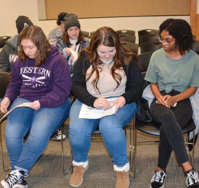 Western Carolina University students attend an event organized by the Student Democracy Coalition to learn what will be on the March Primary ballot. Jessi Stone photo