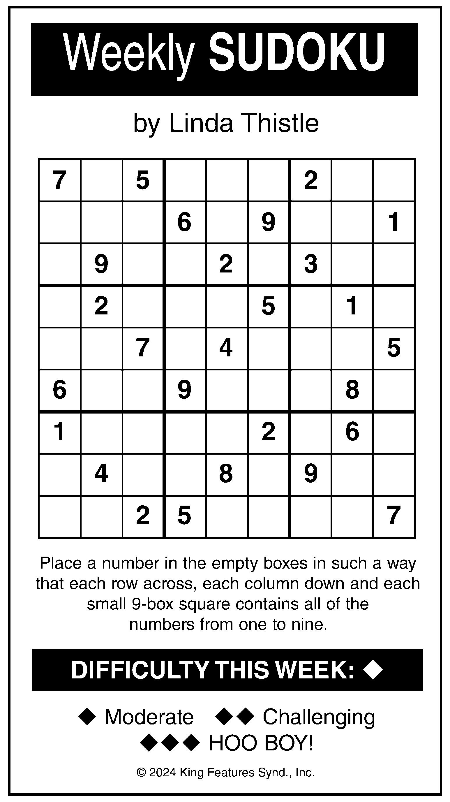 Here’s How It Works: Sudoku puzzles are formatted as a 9x9 grid, broken down into nine 3x3 boxes. To solve a sudoku, the numbers 1 through 9 must fill each row, column and box. Each number can appear only once in each row, column and box. You can figure out the order in which the numbers will appear by using the numeric clues already provided in the boxes. The more numbers you name, the easier it gets to solve the puzzle!