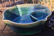 Susan Coe was born in England, grew up in Alabama, and now lives just outside of Bryson City. There was one spot left in the pottery class she decided to take at Southwest Community College (SWCC). Soon thereafter, pottery consumed her. Today, Susan has a home studio where she produces her colorful, functional pottery.