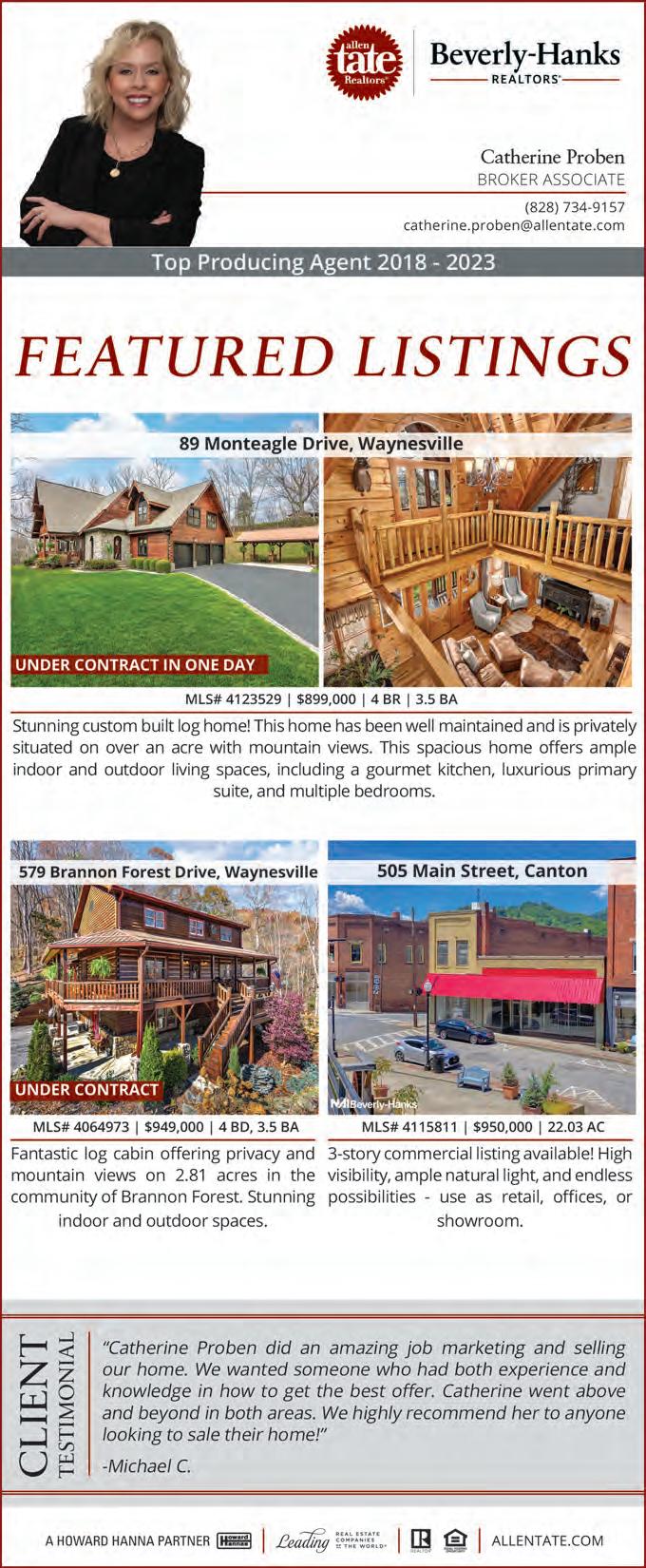 Home Goods PREPARE FOR POWER OUTAGES TODAY With-Land For Sale TINY HOME LOTS FOR SALE Medical ATTENTION: VIAGRA & CIALIS USERS! A ATTENTION OXYGEN THERAPY USERS!HEARING AIDS!!Real Estate Announcements PUBLISHER’S NOTICE-origin, or an intention to-April 10-16, 2024 www.wncmarketplace.com WNC MarketPlace 29 Randall Rogers (828) 734-8862 I Am Proud of Our Mountains and Would Love to Show You Around! BROOKE PARROTT brooke.parrott@allentate.com 828.734.2146 moc.etatnella@re h t .nelle 38-437)828( ROTLAER SFR, ECO, GREEN 828.506.7137 Amy@IJBproperties.com 18 S Pack Square, Asheville, NC 28801 Real . ood Co ywHay gents Estate A ADDVVEER TO ADV ESI T RT ymountads@smoky 828.452.4 T EXXT NEHTNI EX tainneewws.com 251 EUSSI
