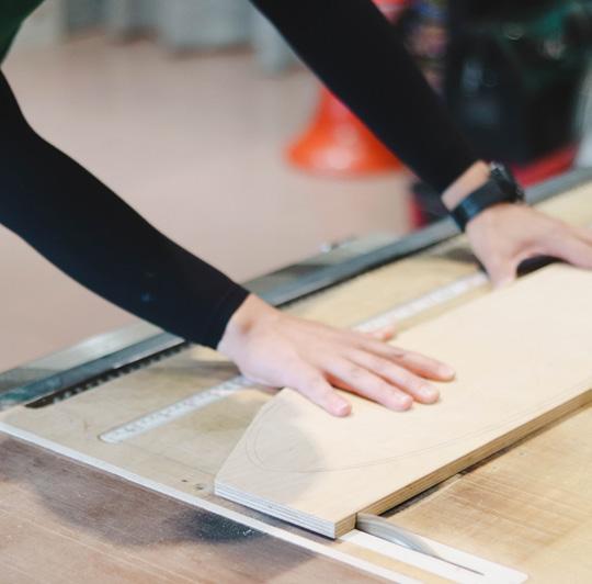 S.2 學會鋸台、線鋸機操作,大概切出滑板板身。