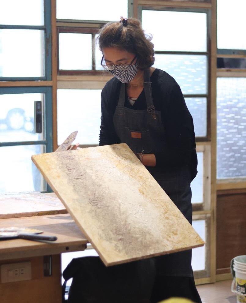第三代匠師,傳承阿公、爸爸的技術,再加上自身超 過 28 年的泥作經驗,是一位功力深厚的「土水師」, 也是目前台灣唯一可以教大家用水泥作畫的匠師。