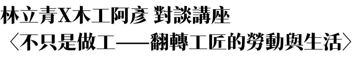 木工是一種有關技藝與勞動的職業, 但在「唯有讀書高」的社會氛圍下, 卻被排除於教育體制的選擇之外,被 認為是「不讀書才去做工」。然而, 木工或各類工種,卻是人們生活不可 或缺的一環。特別是在疫情期間,與 後疫情時代,缺工缺料的情形日漸顯 著。