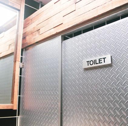 保留舊有的門扇,貼上 模仿「鍍鋅花板」的塑 膠地磚,顯現金屬工業 風格,同時降低重量與 造價。您是否也被幾可 亂真的質感給騙過去了 呢?