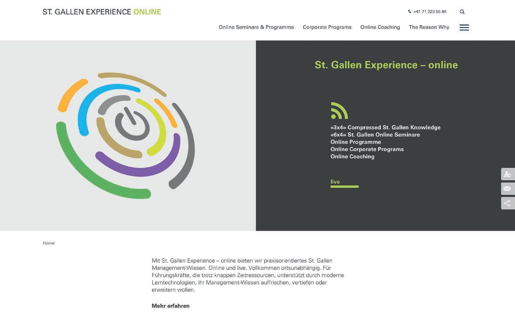 ST. GALLEN EXPERIENCE – ONLINE ST. GALLER MANAGEMENT WISSEN. LIVE UND ONLINE.
