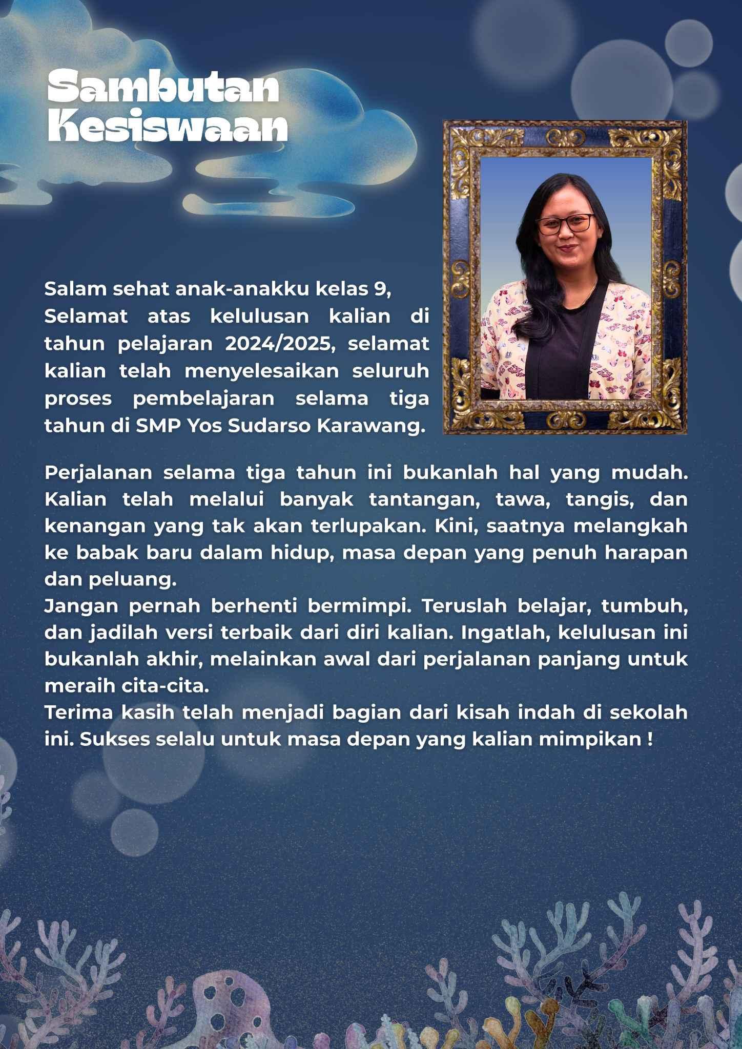 Di era digital yang terus berkembang, kami, keluarga besar SMP Yos Sudarso Karawang melangkah maju dengan menghadirkannya secara digital—agar setiap momen tak lekang oleh waktu dan dapat dikenang kapan saja, di mana saja.