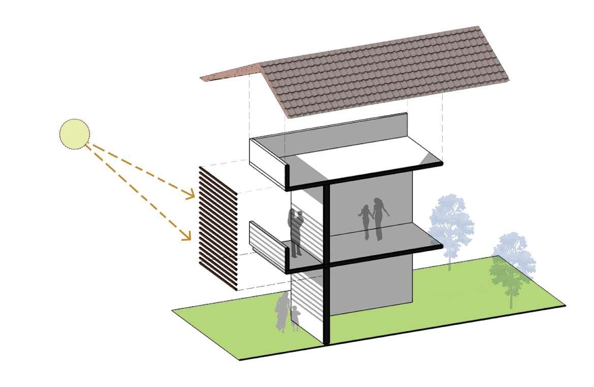 The balconies have louvers installed to block direct sunlight. In addition to providing shade, it acts as a buffer to keep the air at a comfortable temperature.