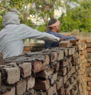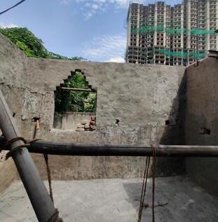 Construction phase of the room with added jaali wall, corbelled window and levelled flooring.