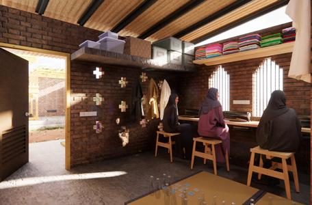 Proposed room for skills like sewing and embroidery with brick jaali to enhance light and ventilation in the room as well as provides visual connectivity without hindering between the creche and skill development area.