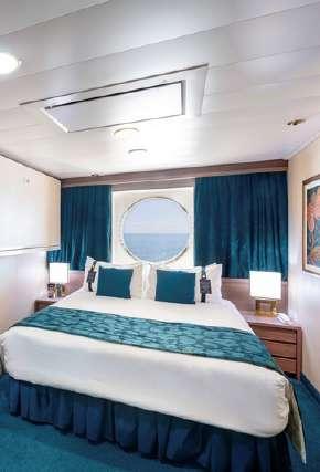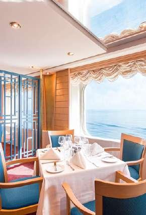 À bord, les passagers profitent du Spa Aurea, d’un solarium et de salons panoramiques offrant une vue imprenable sur l’océan.