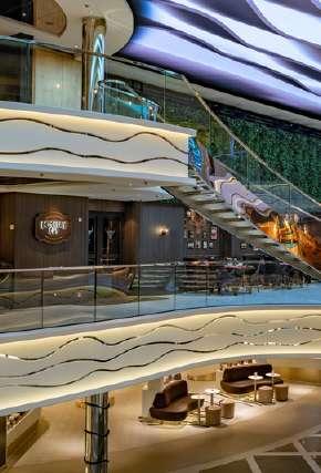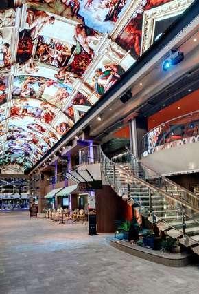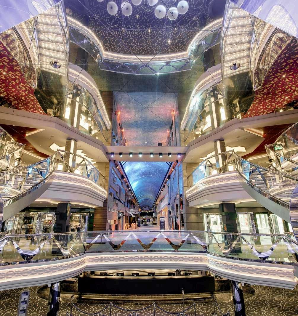 MSC Grandiosa dispose d’une galerie intérieure de 111 mètres de long, avec un dôme en LED qui change de décor selon le moment de la journée et les événements.