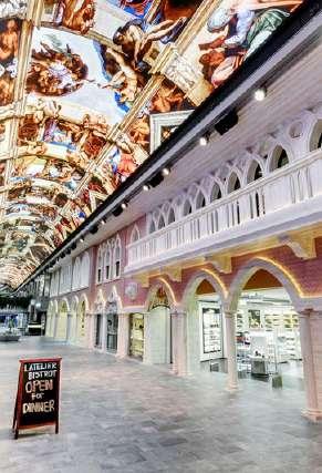 La galerie abrite des boutiques, des restaurants, des bars et un espace pour des spectacles et des fêtes