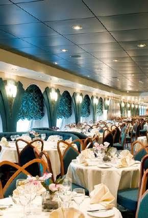 Il offre une variété d’options de restauration, dont des restaurants français, tex-mex et italien, et un spa avec un bain turc et un hammam