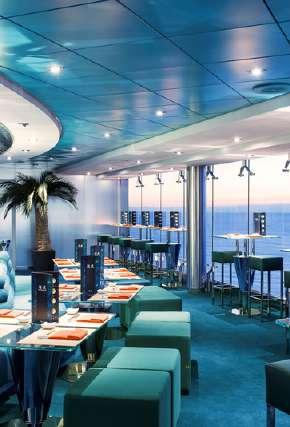 À bord, les passagers profitent du Spa Aurea, d’un solarium et de salons panoramiques offrant une vue imprenable sur l’océan