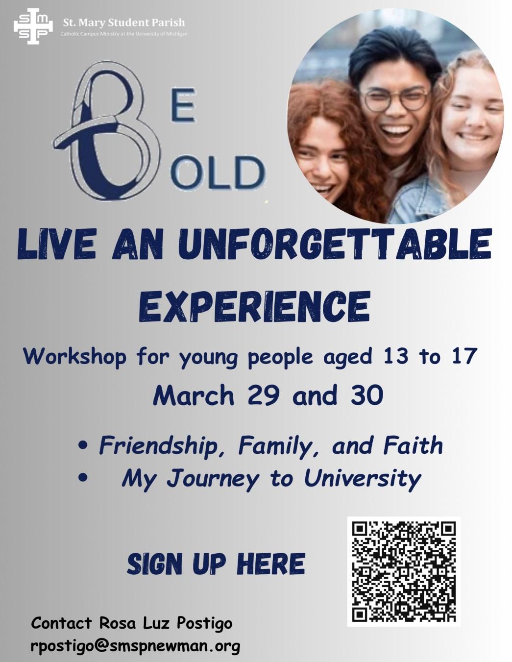 9:00 AM Be Bold Workshop Newman Hall, Newman Room, Courtyard