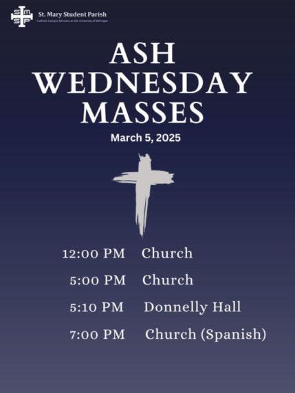 From Monday, March 3, to Thursday, March 5, the office will close at 9 PM, and on Friday, March 7, it will close at 1 PM. There won’t be confessions on Wednesday, March 5 (Ash Wednesday).