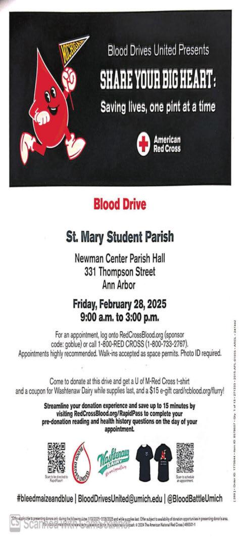 These can be sent to our mailing address: St. Mary Student Parish, 331 Thompson Street, Ann Arbor, MI 48104