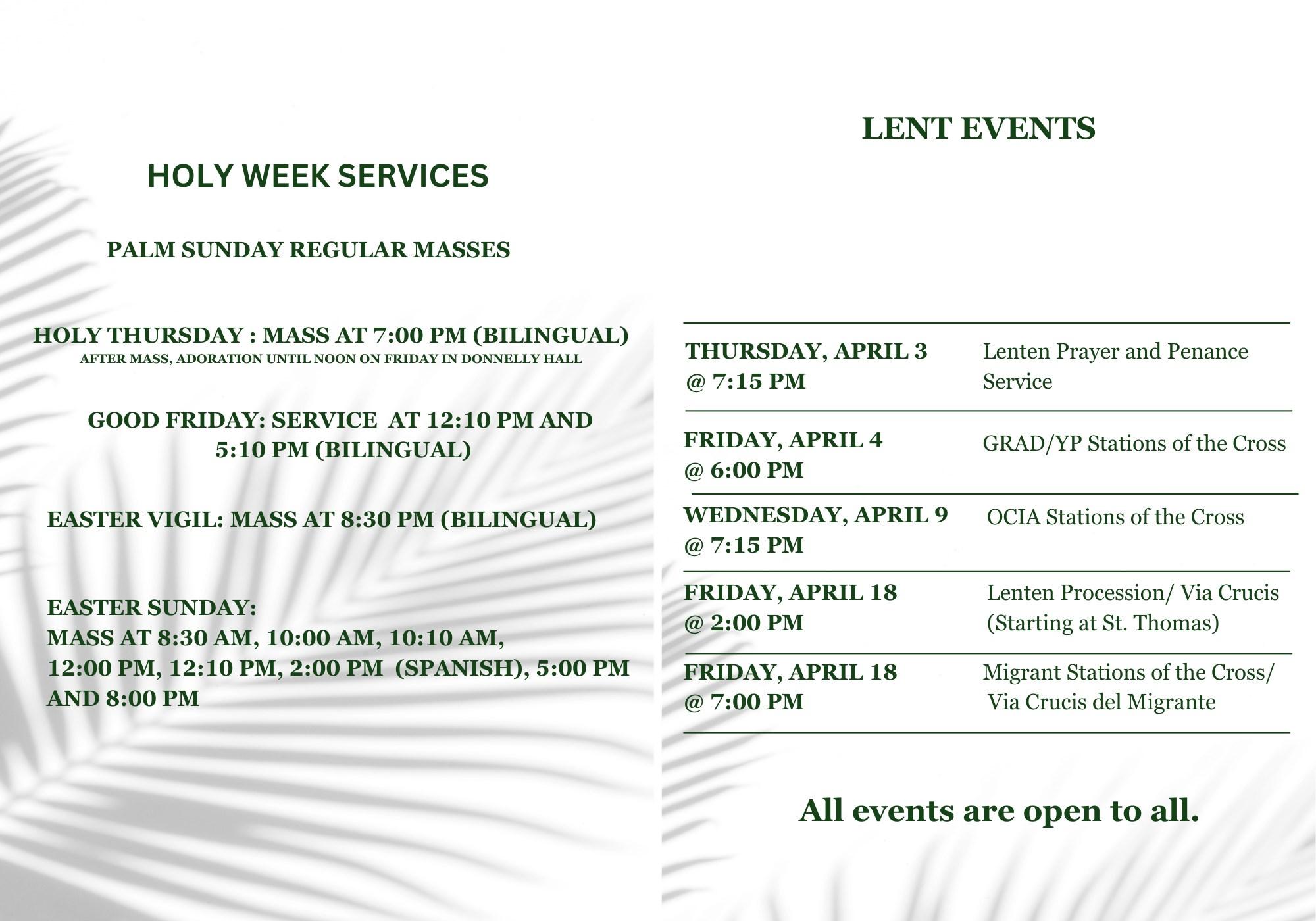 WEDNESDAY, APRIL 2 12:00 PM Mass for THURSDAY, APRIL 3 5:10 PM Mass for