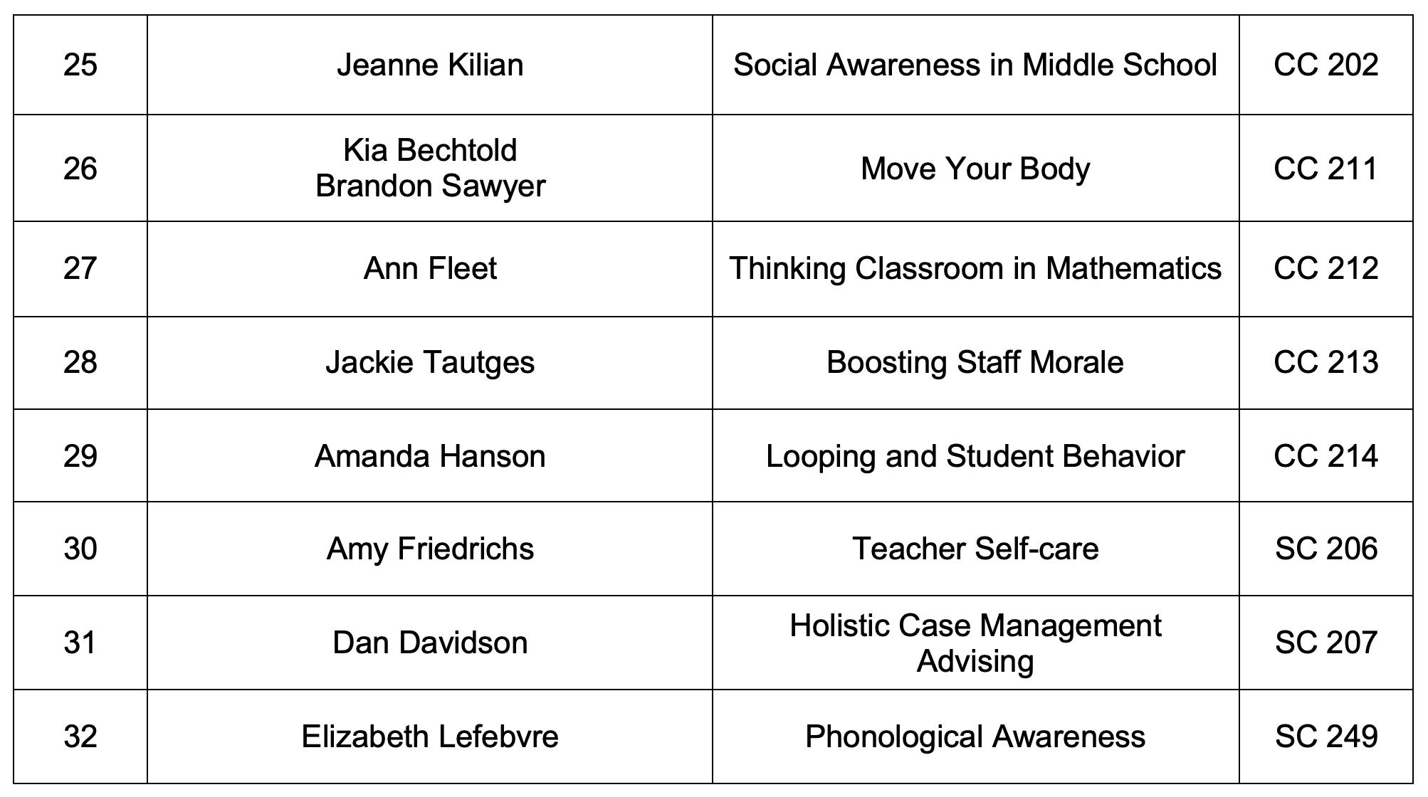 • Continuing Education Unit Certificates are available for any educators attending the conference. The CEU Certificates are available at the end of the conference for signature. Please contact Tanya, Jen, or Denny to get them signed.
