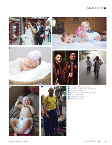 Penn Collins ’98 married Jess Linn Emma, Vera, and Josephine Meredith Ray Sloane Alice Womack Christian Cousins ’99 and Yuval Weber ’00 Owen and Jack Barta Nora Josephine Mazow Robert Schneider ’99