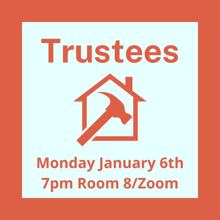 Trustees meet in open session the first Monday of every month at 7PM in Rm 8, with a Zoom option available