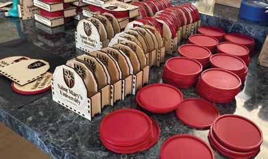 For a special memento of the campaign kickoff, Saint Mary’s turned to Dan Guillou, of Oceanside, Calif. Guillou grew up on Saint Mary’s Winona Campus. His father, Lou Guillou B’58, was a math professor for over 30 years, and Dan Guillou can recite names of the De La Salle Christian Brothers, who were close family friends. So when he was asked to do 800 coasters and 200 holders in honor of the university’s capital campaign, he was excited for several reasons. For starters, he knows his parents would get a set and be proud.