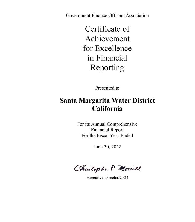 Thank you for your continued support and trust in the Santa Margarita Water District.