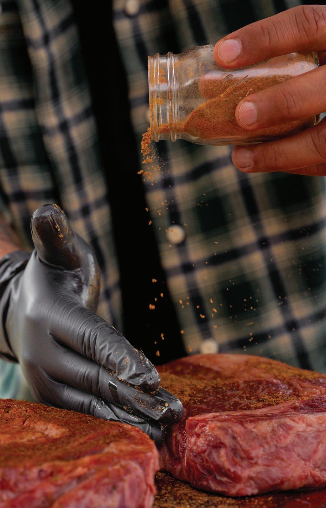 Well-marbled steaks like SRF ribeyes are my choice for camping. The extra fat makes them more forgiving to prepare. For pan searing, try the 1-inch thick ribeyes since they cook quickly. If you’re using a campfre, the 1½-inch steaks hold up best. American Wagyu Black® Ribeye Steaks snakeriverfarms.com