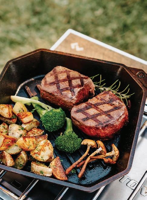 Cooking your dinner under a star-flled sky is a romantic notion, but nighttime makes it diffcult to prep and grill. The Devos LightRanger is a game changer. A powerful, rechargeable LED lantern attaches to a telescoping pole to light up your entire camp kitchen. devosoutdoor.com