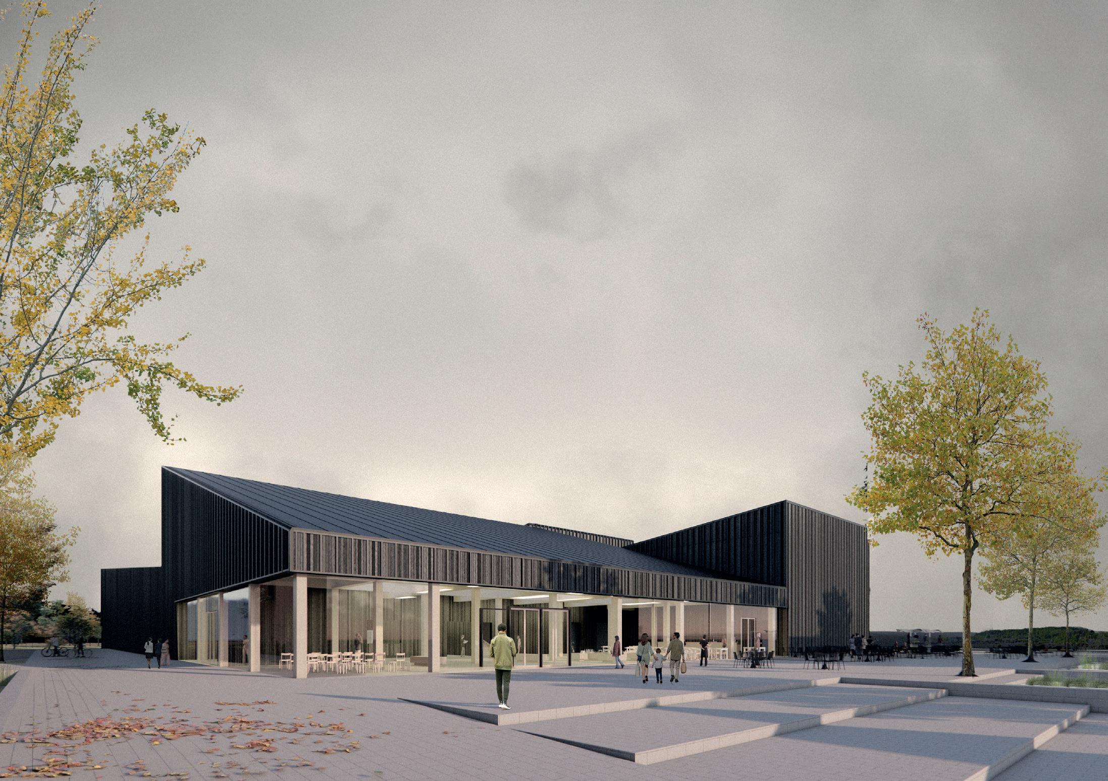 Uuden rakennuksen ulkoarkkitehtuuria hallitsee Shou sugi ban menetelmällä hiilletty ja kierrätetty puu, joka on huoltovapaa materiaali. Kattomateriaalina toimii tumma julkisivun värinen konesaumapeltikate, jonka päälle on luontevaa asentaa aurinkopaneelit. Sisäarkkitehtuuri on pelkistettyä ja selkeälinjaista, jota rytmittää puiset kattopalkit ja pilarit. Näyttelytilojen materiaalimaailma tukee näyttelytoimintaa ja tilojen muuntojoustavuutta. Molempiin näyttelytiloihin luonnonvalo tulvii kattoikkunoiden kautta luoden tasaiset valaistusolosuhteet. Kattoikkunat on myös mahdollista peittää saaden aikaan valolta suljetun tilakokonaisuuden.