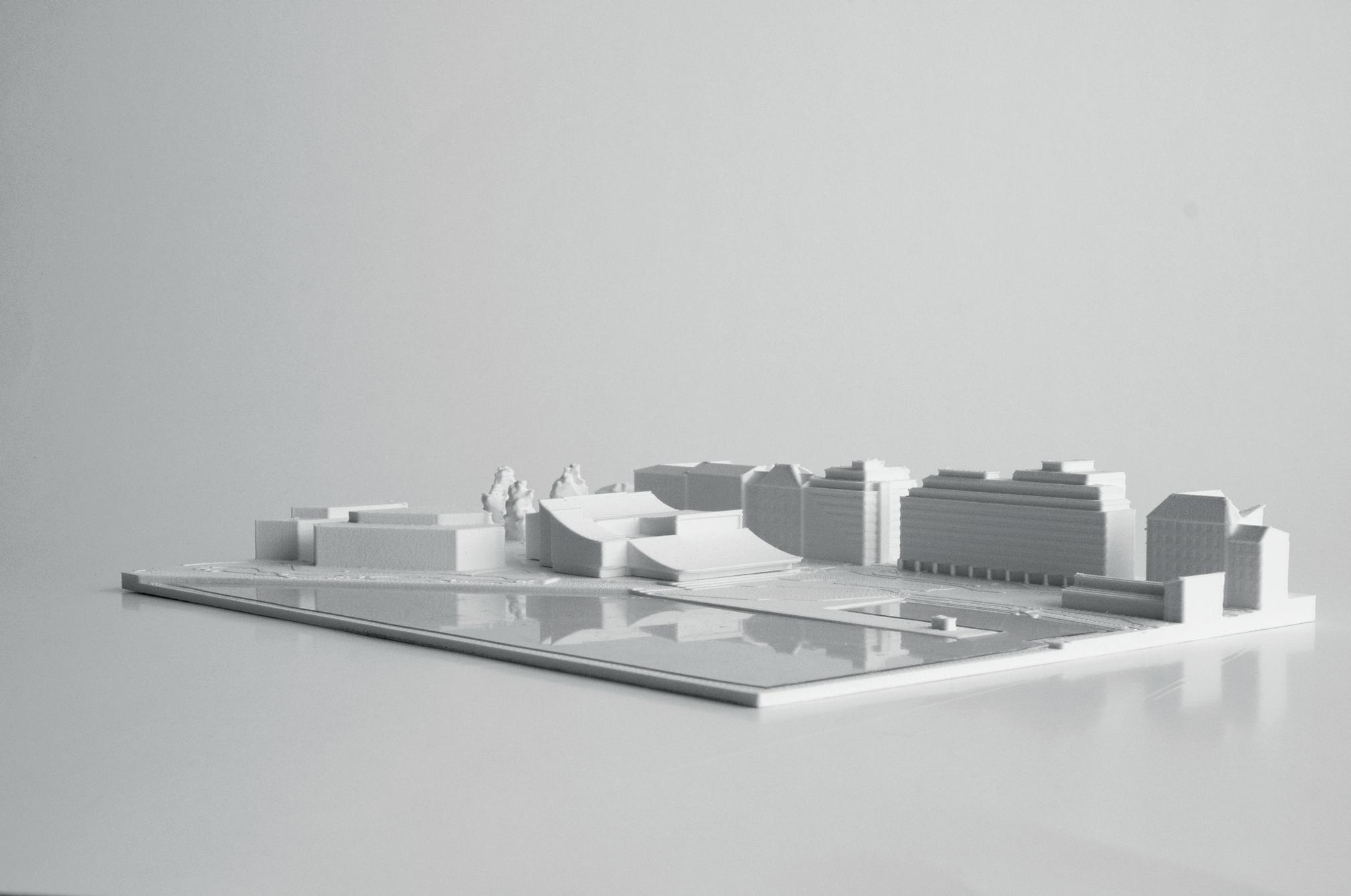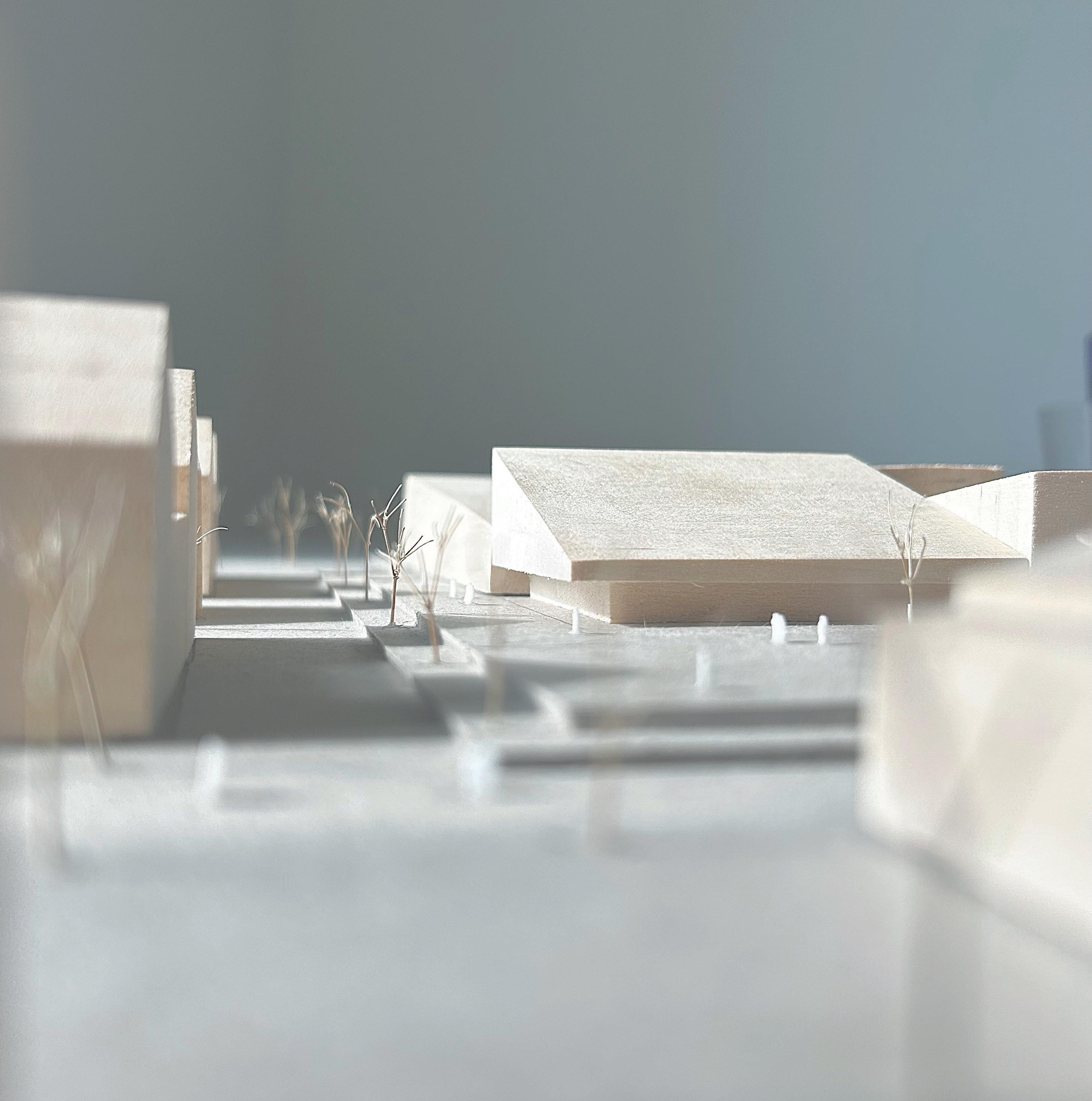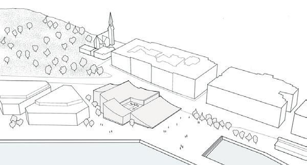 Toisessa suunnitteluvaiheessa rakennusmassoja yksinkertaistettiin ja monimutkaista kattogeometriaa selkeytettiin.