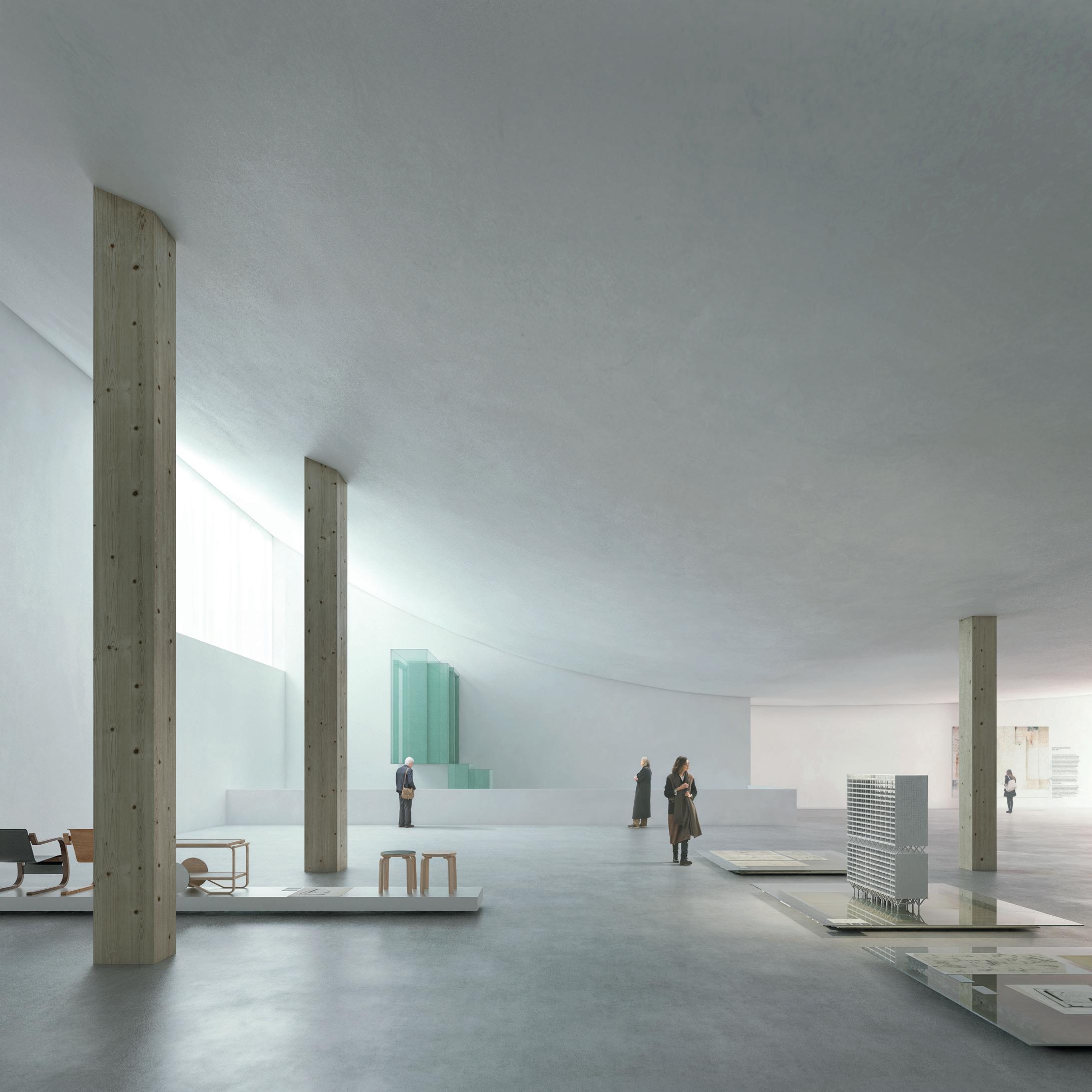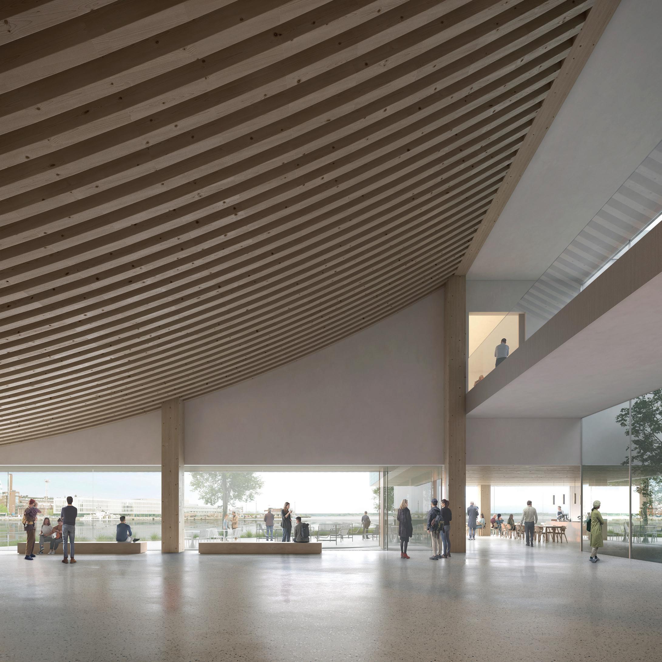 Rakennuksen aaltomainen kattomuoto jatkuu sisätiloihin asti, luoden vuoropuhelun ulko- ja sisätilojen välille. Suunnittelussa painottuivat selkeät näkymät näyttelysisäänkäynteihin, ja muut julkiset toiminnot on sulautettu yhtenäiseen tilalliseen kokonaisuuteen, joka ohjaa kävijää luonnollisesti tilasarjojen läpi. Aulasta avautuu panoraamanäkymä Eteläsataman kansallismaisemaan ja avoimelle merelle, muodostaen suoran visuaalisen yhteyden vilkkaalle uudelle rantapromenadille.