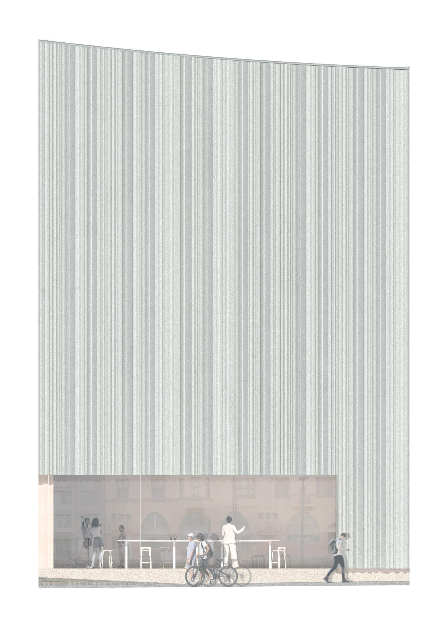 Katot muodostavat aaltoja. Tämä ele tuo rakennukselle ihmisen mittakaavaisen lähestyttävyyden ja luo mieleenpainuvan siluetin kaupunkimaisemaan.