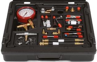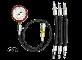 • Set contains a tee manifold with a shutoff valve, a 3-1/2" diameter gauge assembly with a blowdown valve and the adaptors needed to test most fuel injection systems