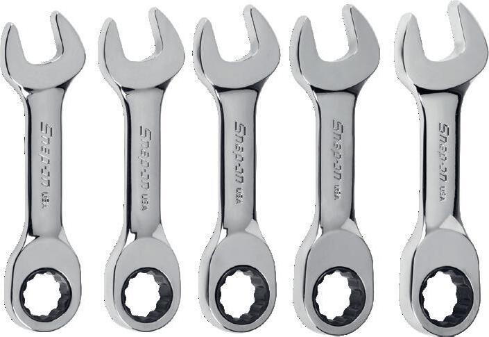 5pc 12-Point Metric Flank Drive® 0° Offset Short Ratcheting Combination Wrench Set (15-19mm) OXKRM705