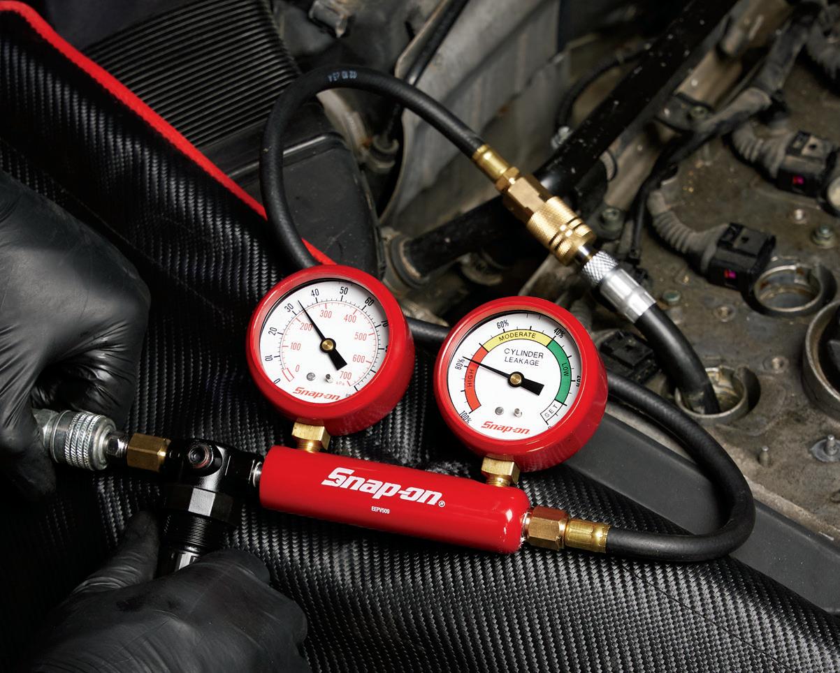 • Cylinder leakage gauge displays leakage as a percentage of input pressure in one of three distinctive zones: high, moderate or low
