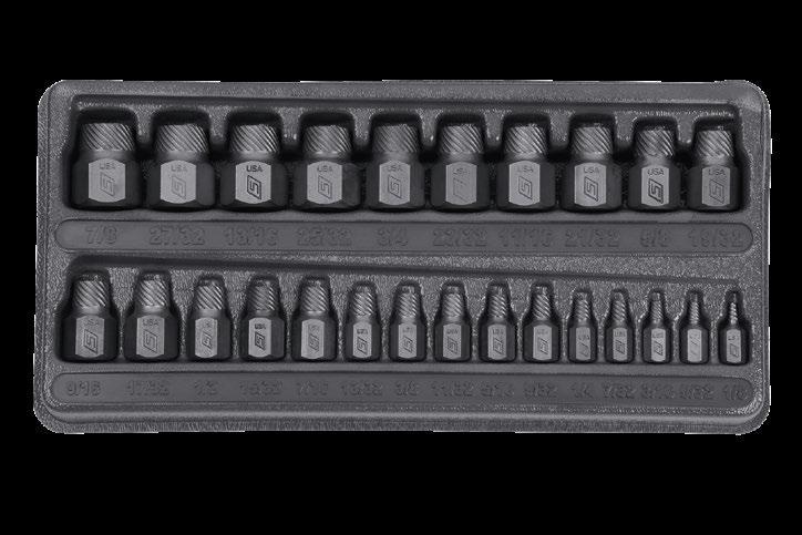 • Left-hand threads provide superior gripping power for removing damaged bolts, studs and screws