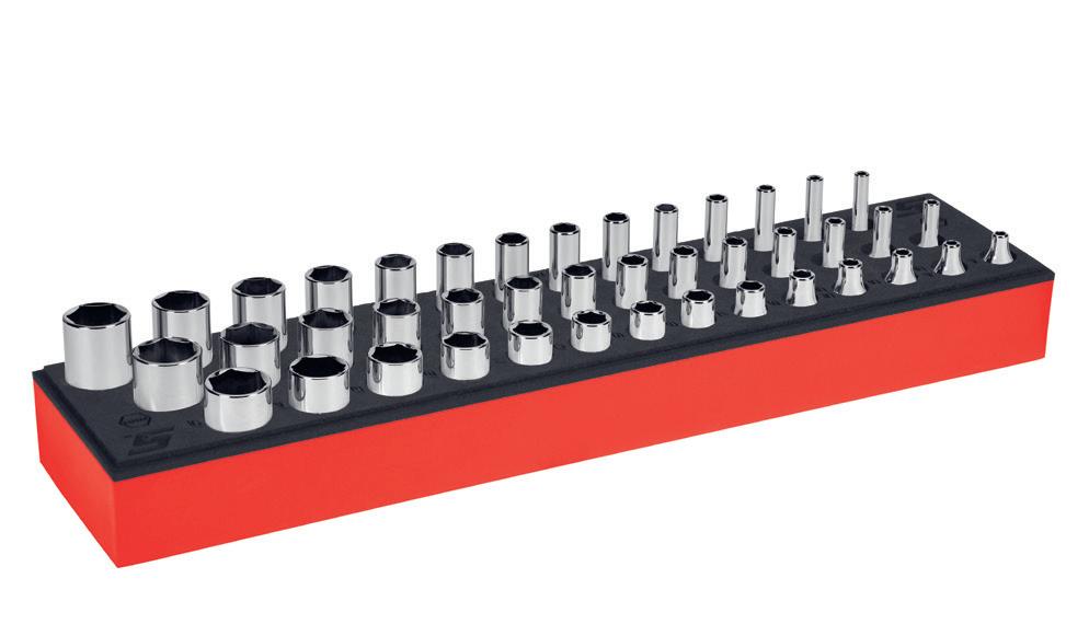 • Includes FS301–FS321 (15/16–1") shallow sockets, FSS081–FSS321 (1/4–1") semi-deep sockets and SFS301–SFS321 (15/16–1") deep sockets in a PRO-FI™ organizer