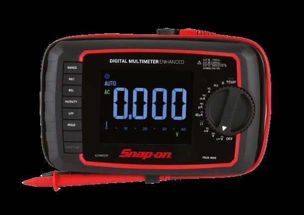 • Large, white backlit display for easy reading, plus quick identification of symbols in low light conditions and with the backlight off—the best Snap-on® meter in bright daylight