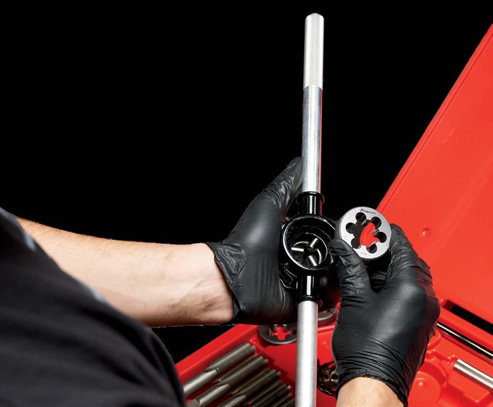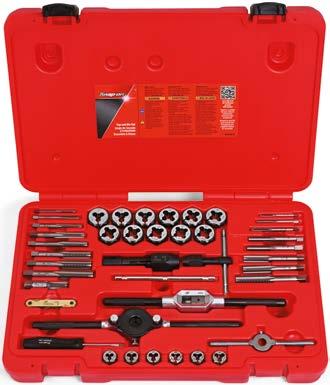 • Set includes a wide range of tap wrenches, die stocks, thread gauges and exclusive die sockets