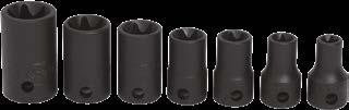 • 1/2" drive components include: External TORX® Sockets (E18–E24); (2) Tamper-Resistant TORX® Bit Sockets (T55 and T60) and (2) Tamper-Resistant TORX® Long Bit Sockets (T55 and T60)