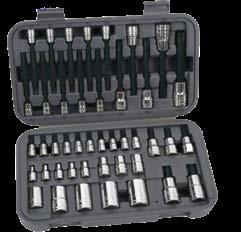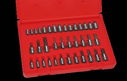 • 3/8" drive components include: External TORX® Sockets (E10–E16); (3) Tamper-Resistant TORX® Bit Sockets (T40, T45 & T50) and Tamper-Resistant TORX® Long Bit Sockets (T40, T45 & T50)