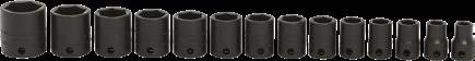 • Snap-on® impact sockets are heat-treated to optimise impact service life with a lower hardness than hand sockets and are able to withstand repeated cycling loads of impact wrenches 3/8" Impacts are ideal for use on a range of operations, including; Breaking loose or tigthening wheel lug nuts, Breaking free over tightened suspension bolts, Unseizing various nuts or bolts on brake components DURABLE Sockets are made with special alloy steel for a hard wear resistant tool finish WALL DESIGN