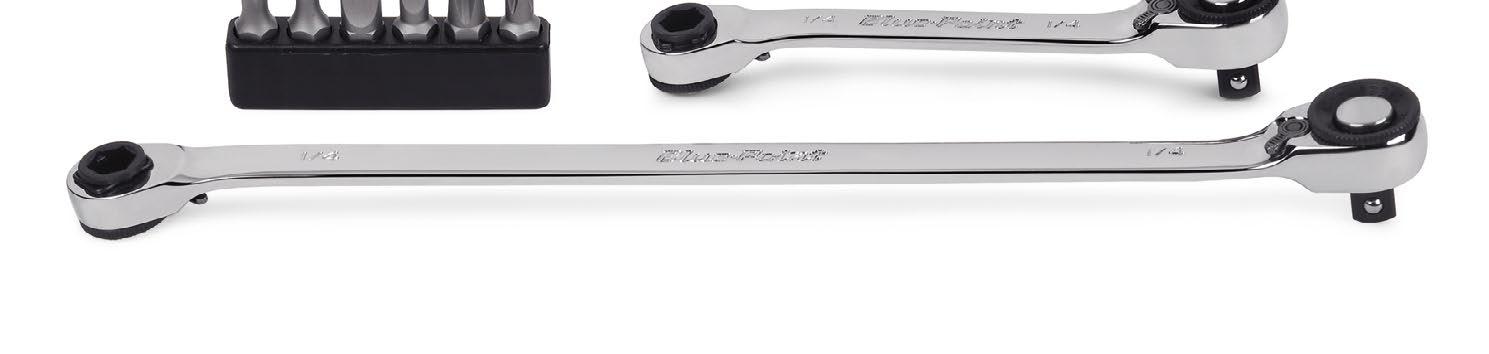• Mini 1/4" drive ratchet and 1/4" hex bit driver built in to one unit