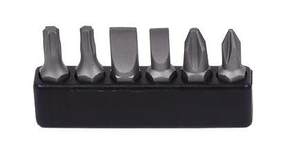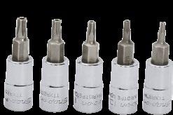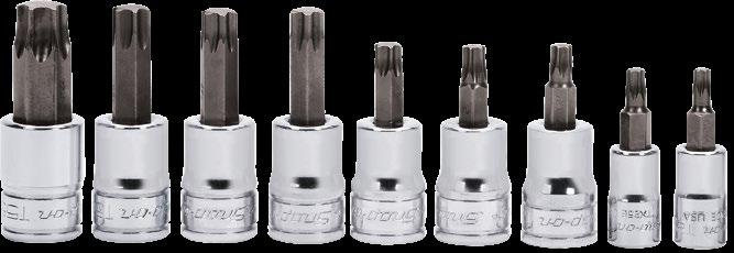 • 1/4" drive components include (5) External Sockets (E4–E8); (10) Tamper-Resistant TORX® Bit Sockets (T6–T30) and (10) TamperResistant TORX® Long Bit Sockets (T6–T30)