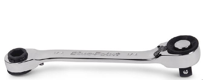 • Reversible pass-through ratcheting box end, allows you to both tighten and loosen by simply flipping the tool over, eliminating the addition of bulky levers or increased head size